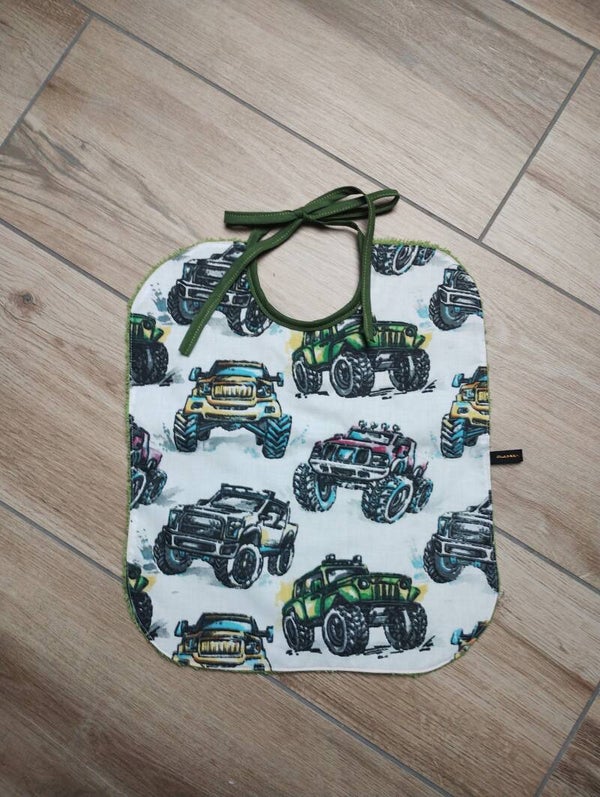 Slabbetje gemaakt van katoen aan de voorzijde en met badstof aan de achterzijde.